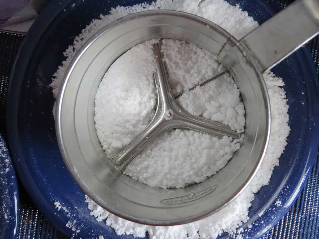 powdered sugar, icing sugar, powdered sugar sieve, flour sifter, metal, equipment, kitchen appliance, kitchen help