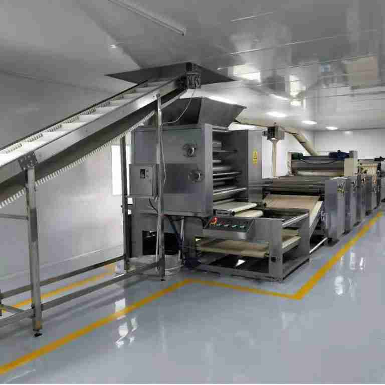 The dough is then passed through a dough sheeter, which rolls it into thin sheets of uniform thickness. This ensures that each biscuit will have a consistent texture and shape.