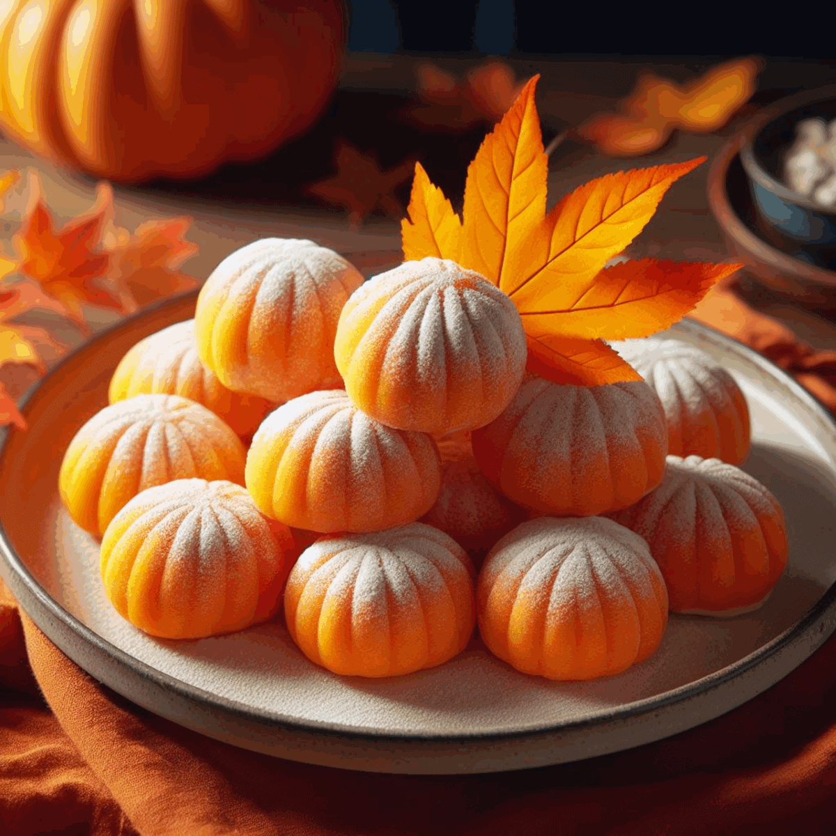 dessert, nature, sweet, fall theme, leaf, mochi, pumpkin recipe, side dish, simple recipe, quick recipe